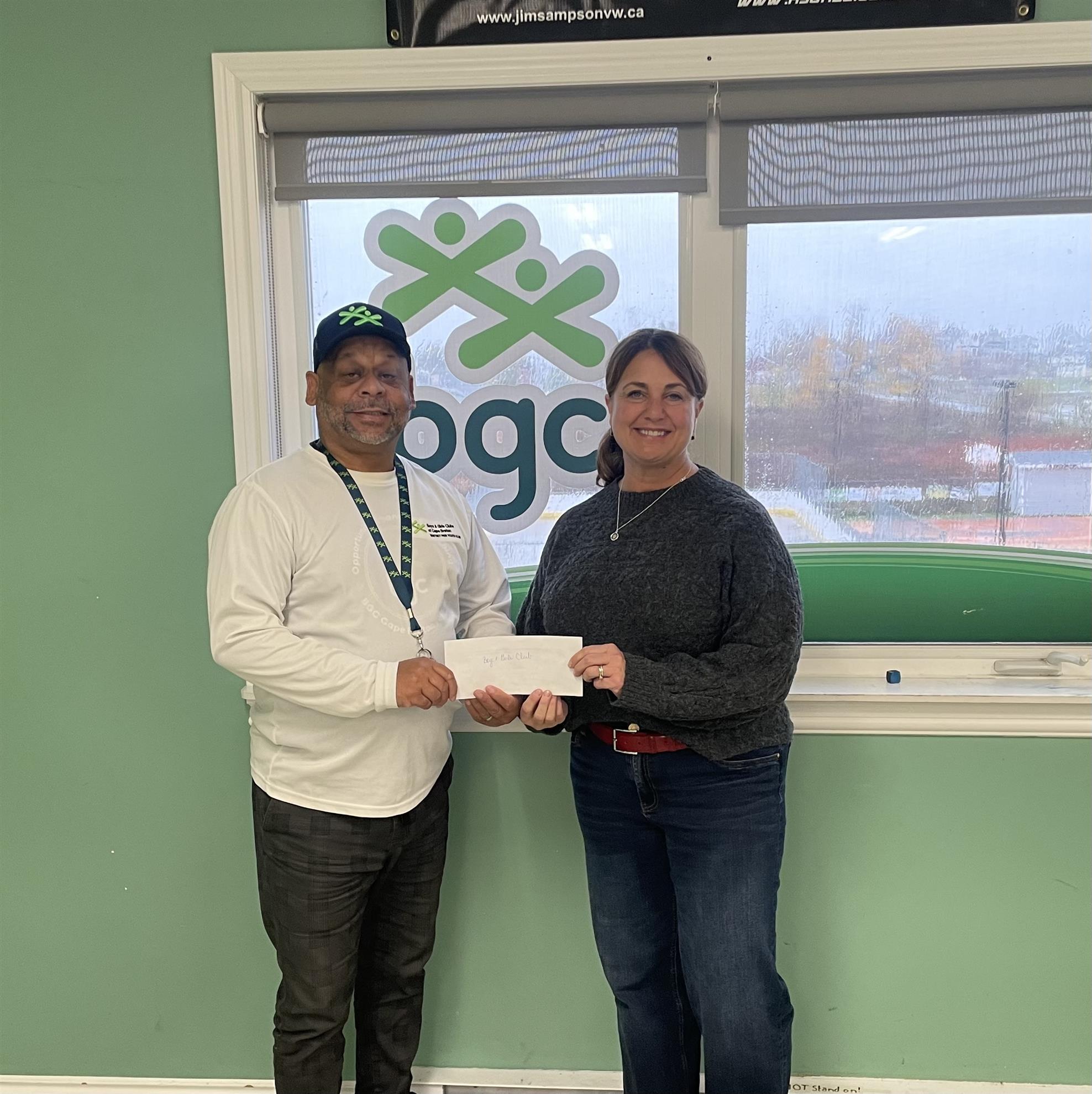 Here, Rotarian Linda Crockett presents Chester Borden, the Executive Director of the Whitney Pier Boys and Girls Club, with a cheque for $500. Chester’s organization helps the youth in our area with programs and services that help kids build self esteem, confidence and learn valuable life skills. Well done Chester!